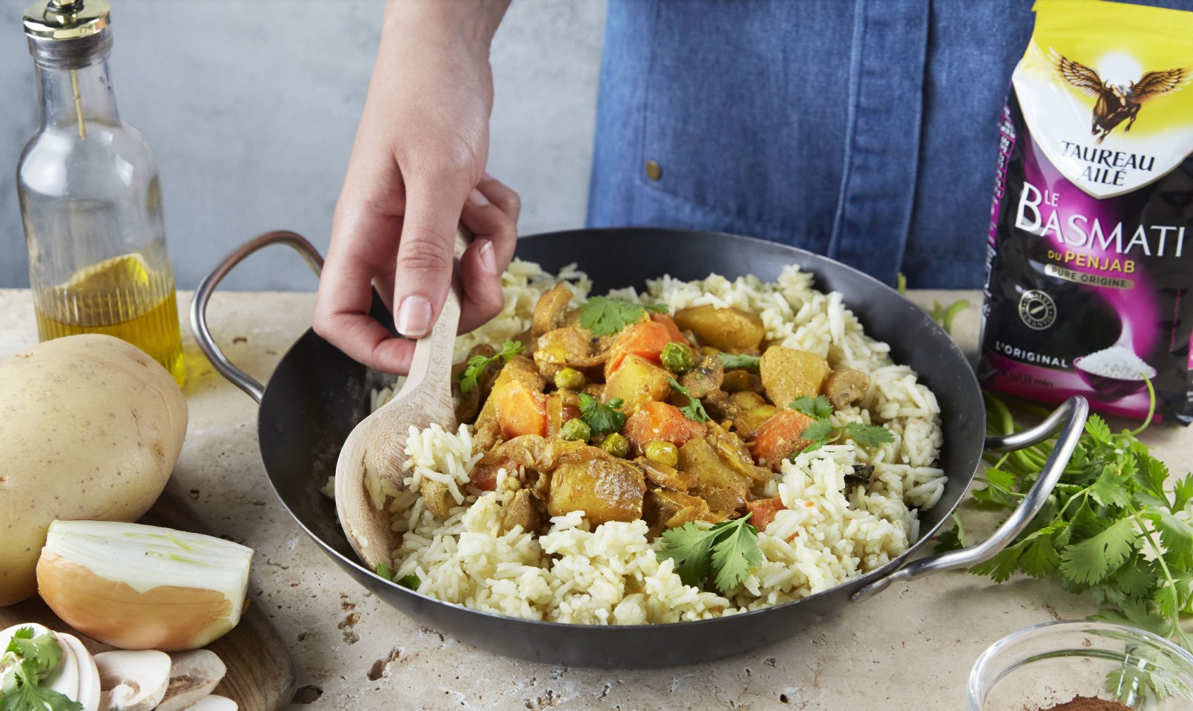 Faites-les revenir rapidement puis ajoutez vos légumes préparés précédemment. Mélangez et laissez cuire votre préparation de Biryani aux légumes.