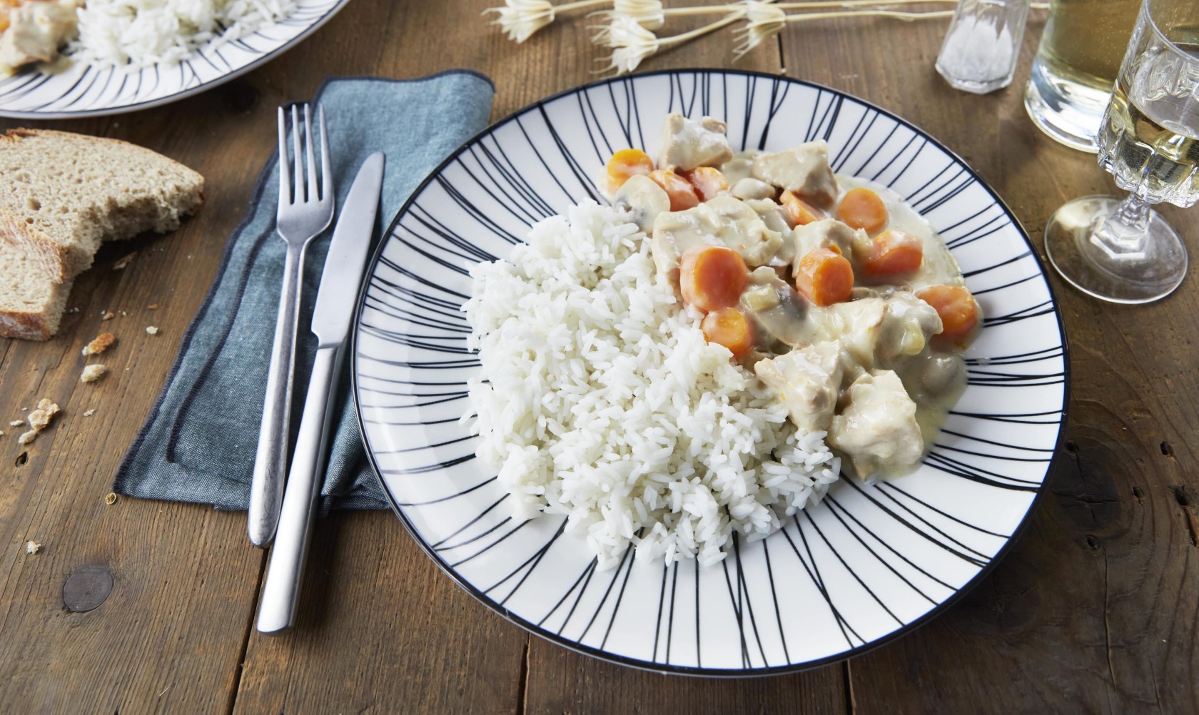 Avant la fin, cuisez le riz Long grain selon les indications du paquet, et servez avec la blanquette, c’est prêt !