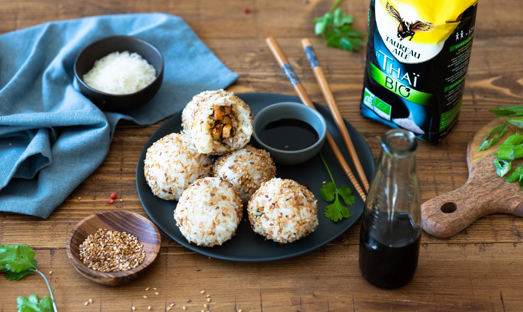 Roulez les boulettes de riz dans les graines de sésame. Servez.