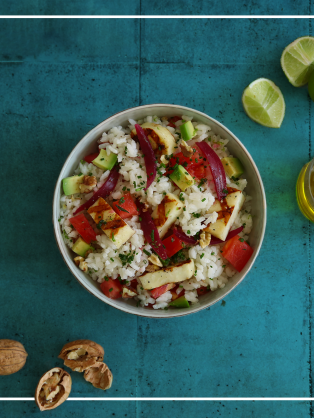 Ajoutez le riz à risotto, mélangez de manière à bien l’enrober d’huile. Laissez cuire 2 minutes jusqu’à ce qu’il soit nacré. Ajoutez le vin blanc et laissez le riz l’absorber.