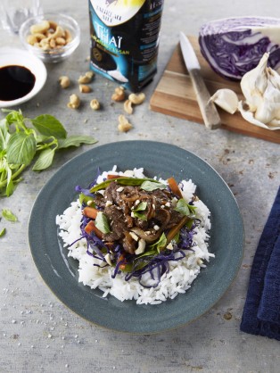 Servir sans tarder avec le tofu grillé, quelques brins de coriandre fraîche, le vert de cébette et des graines de sésame. Pour plus de fraîcheur, ajouter également quelques crudités de saison.
